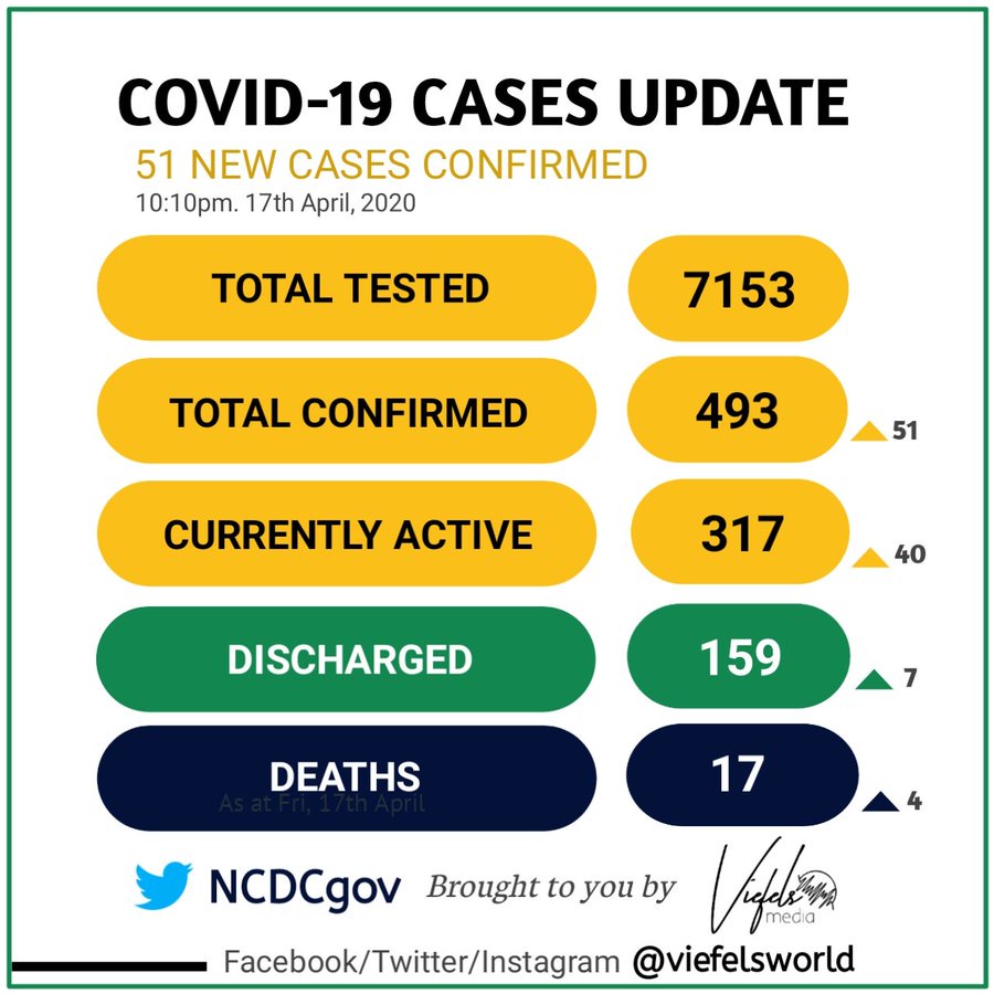 In the latest reports Nigeria Centre for Disease Control showed that there are 51 new cases confirmed with death toll increasing by 4 deaths to bring the total number of Death cases to 17.